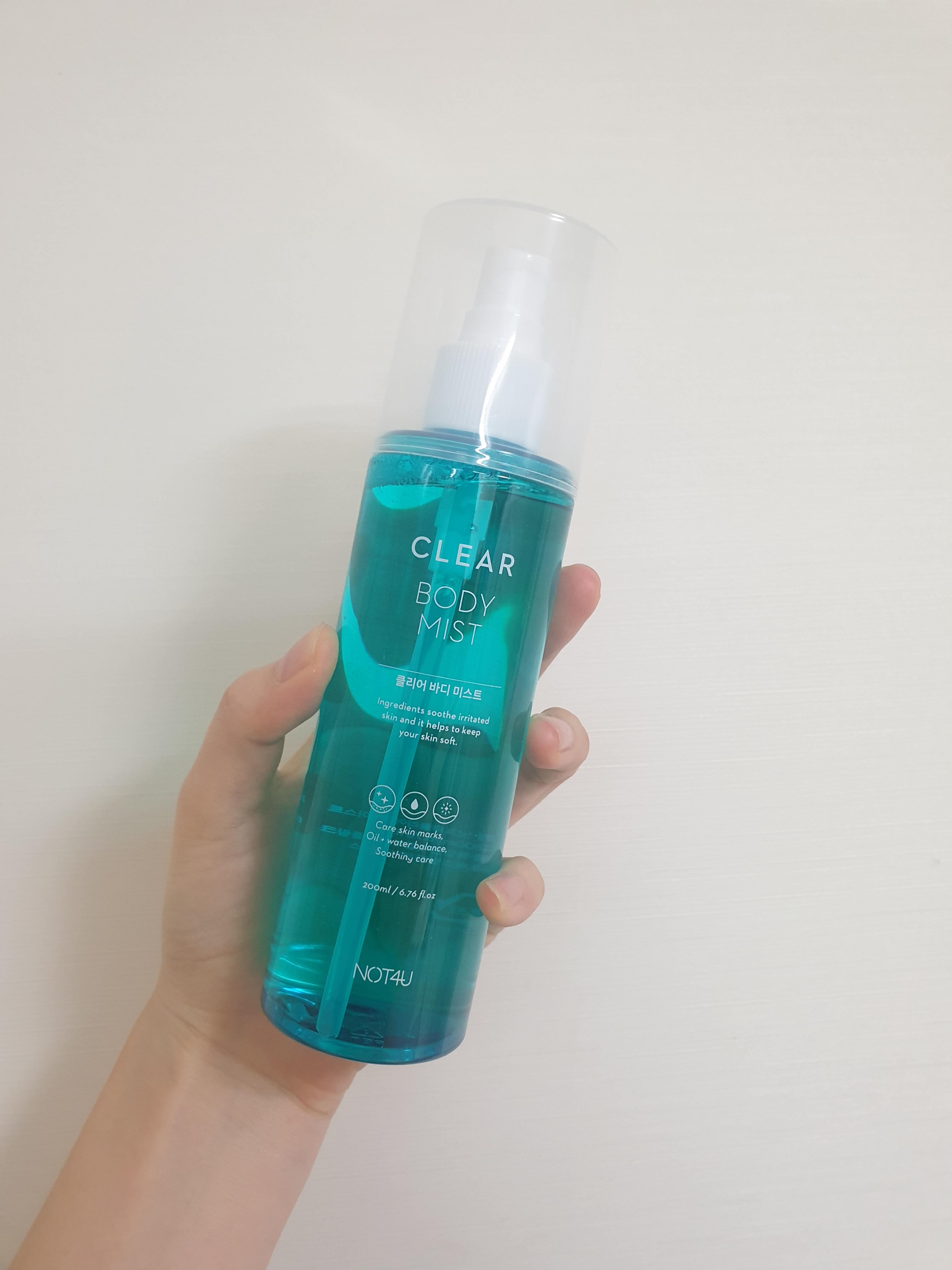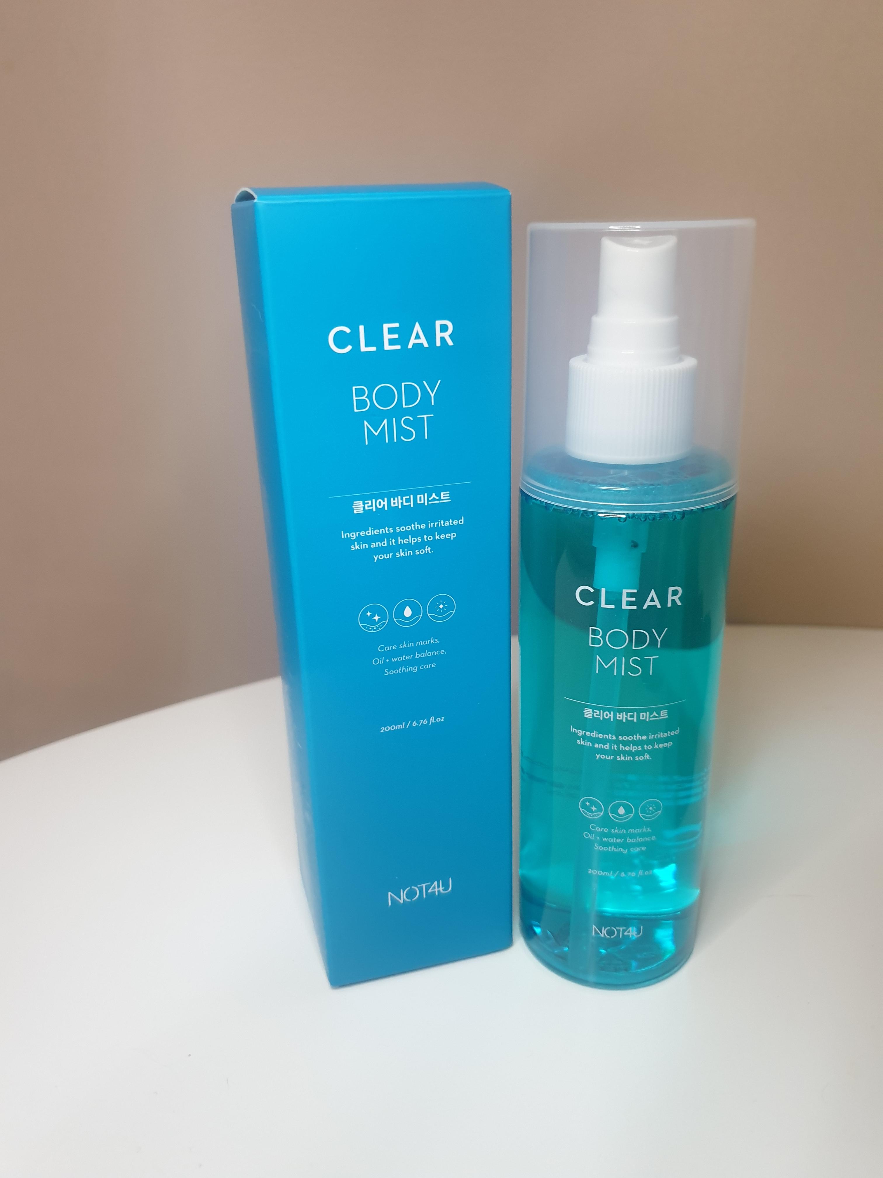 낫포유 클리어 바디 미스트 낫포유 바디 미스트 200ml 전성분: 정제수, 에탄올, 부틸렌글라이콜, 해수, 만델릭애씨드, 구연산나트륨, 가지열매추출물, 베타인살리실레이트, 락토바이오닉애씨드, 빌베리뿌리추출물, 복숭아추출물베타인, 글리시리진산이칼륨, 루페올, 1,2-헥산디올, 멘톨, C-12-13 파레스-9에틸헥실글리세린, 구연산, 디소듐EDTA