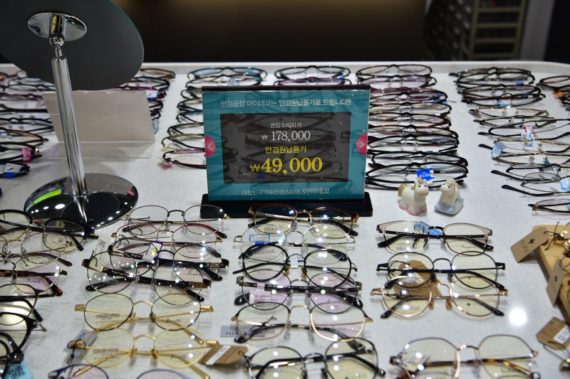 아이데코가 안경 계열의 노브랜드라고 해서 안경테를 자사 공장에서 직접 가져오셨습니다.안경테 디자인이나 내구성 등 퀄리티도 좋고 가격도 저렴해서 구경하는 재미가 있었습니다.