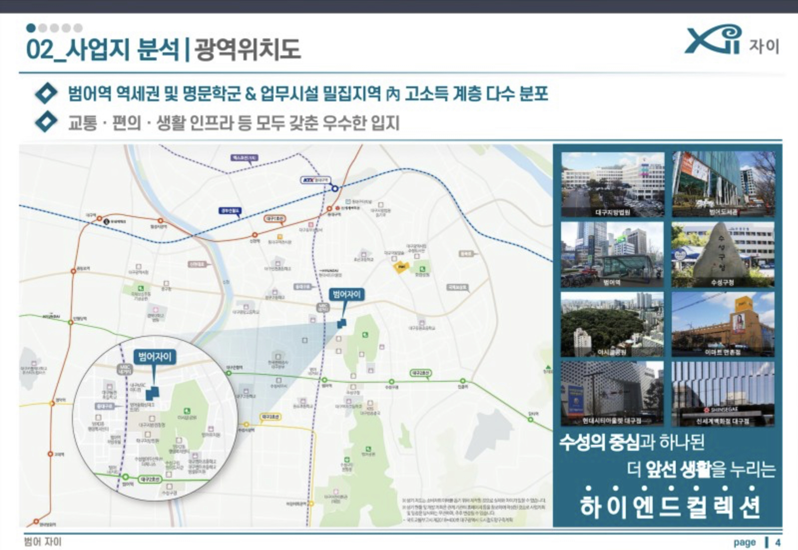 오늘 소개해드릴 아파트 ‘범어자이’는 최근 많은 주목을 받고 있는 대구 수성구 범어동 일대에 위치하고 있어 많은 관심을 받고 있습니다. 대구지하철 EXCO선 신설계획. 특히 ‘범어자이’는 범어동 MBC 사거리 개발의 수혜가 예상되는 위치에 위치한다.