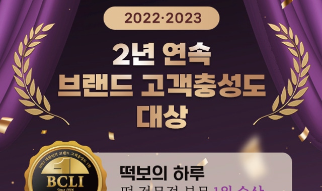 2022년부터 2023년까지!떡보의 하루는 떡 전문점 1위인 고객 충성도에서도 연속 대상을 수상했습니다.여러분을 사랑하는 많은 분들의 성원에 보답할 수 있도록 좋은 제품으로 인사드리겠습니다.감사해요.