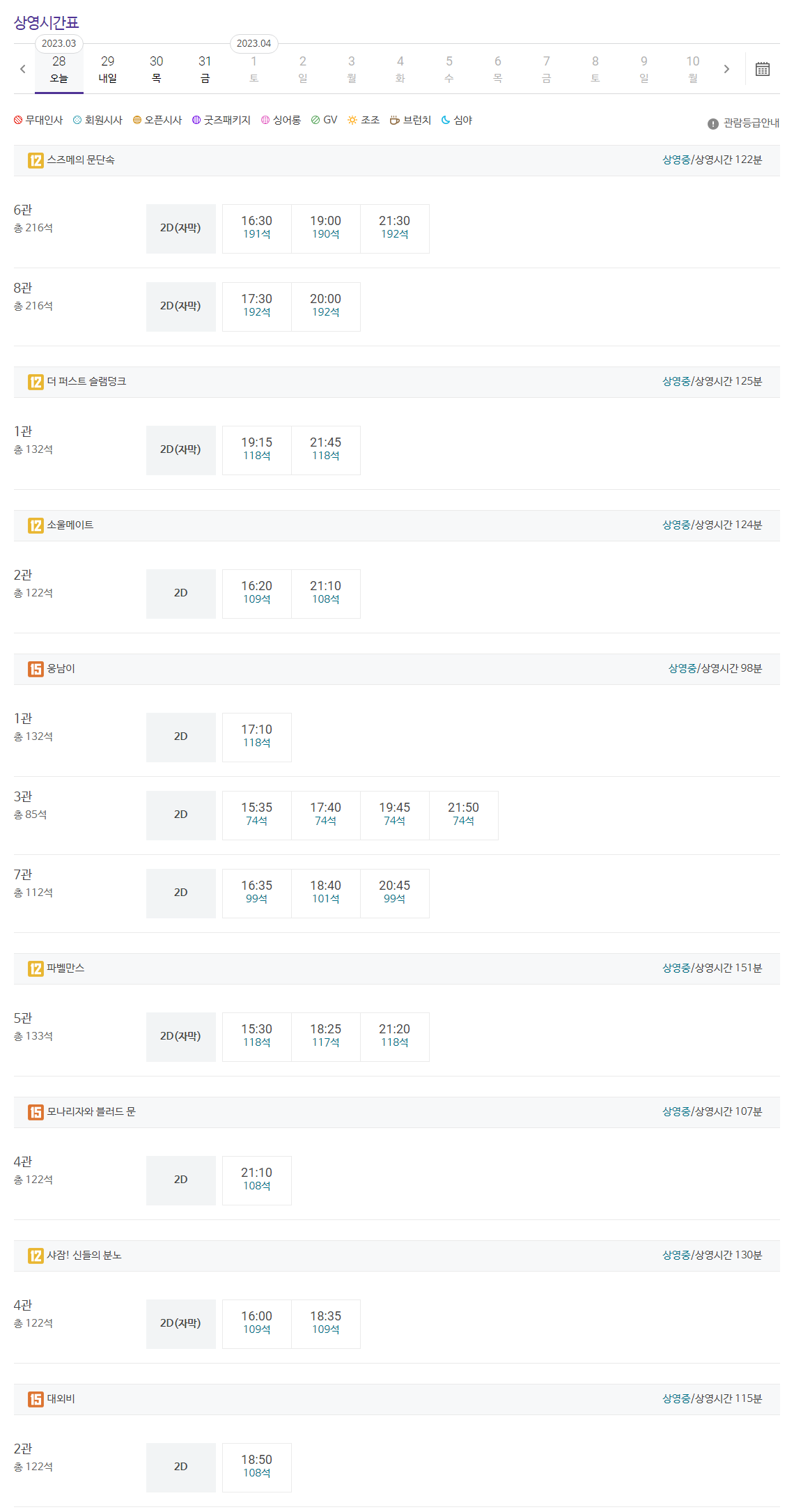 관람료 및 관람시간은 극장별로 상이하며, 위 금액은 메가박스 여수웅천점 기준입니다.