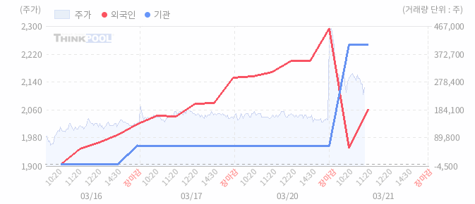상장주식수 대비 기관 순매수 비중이 높은 종목이다. 업계 동향이나 투자회사 보고서를 함께 검토하는 것이 좋습니다. 상태 21.03. 오전 11시 30분