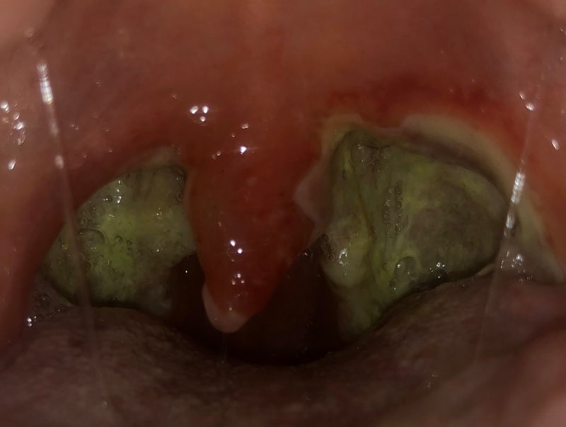 배부르긴 했지만 저녁 약을 먹으려고 요구르트를 하나 먹고 약을 먹은 밤에 보니 편도선에 출혈이 조금 있었지만 심하지는 않았다. 편도 절제술 8일째