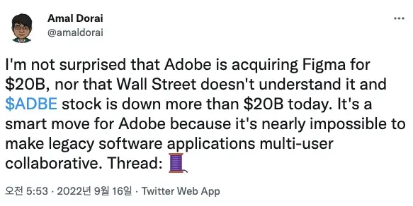 이미 조금 언급했지만 Adobe가 Figma를 비싼 값에 사려고 한 이유와 부정적인 평가를 받은 Figma 인수가 실패 직전인데도 주가가 폭락한 이유를 알아보겠습니다.
